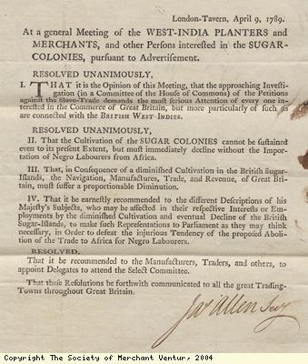 Leaflet from a meeting of the West-India Planters and Merchants, April 9, 1789.