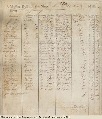 Ships muster rolls from 1783 – 1784; Society of Merchant Venturers archive.